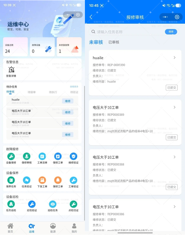 小程序可推送“预见性维护”通知、设备报警通知等,小程序上创建一条预防性维护工单,指派给工程师。一次潜在的非计划停运,被化解在萌芽状态。